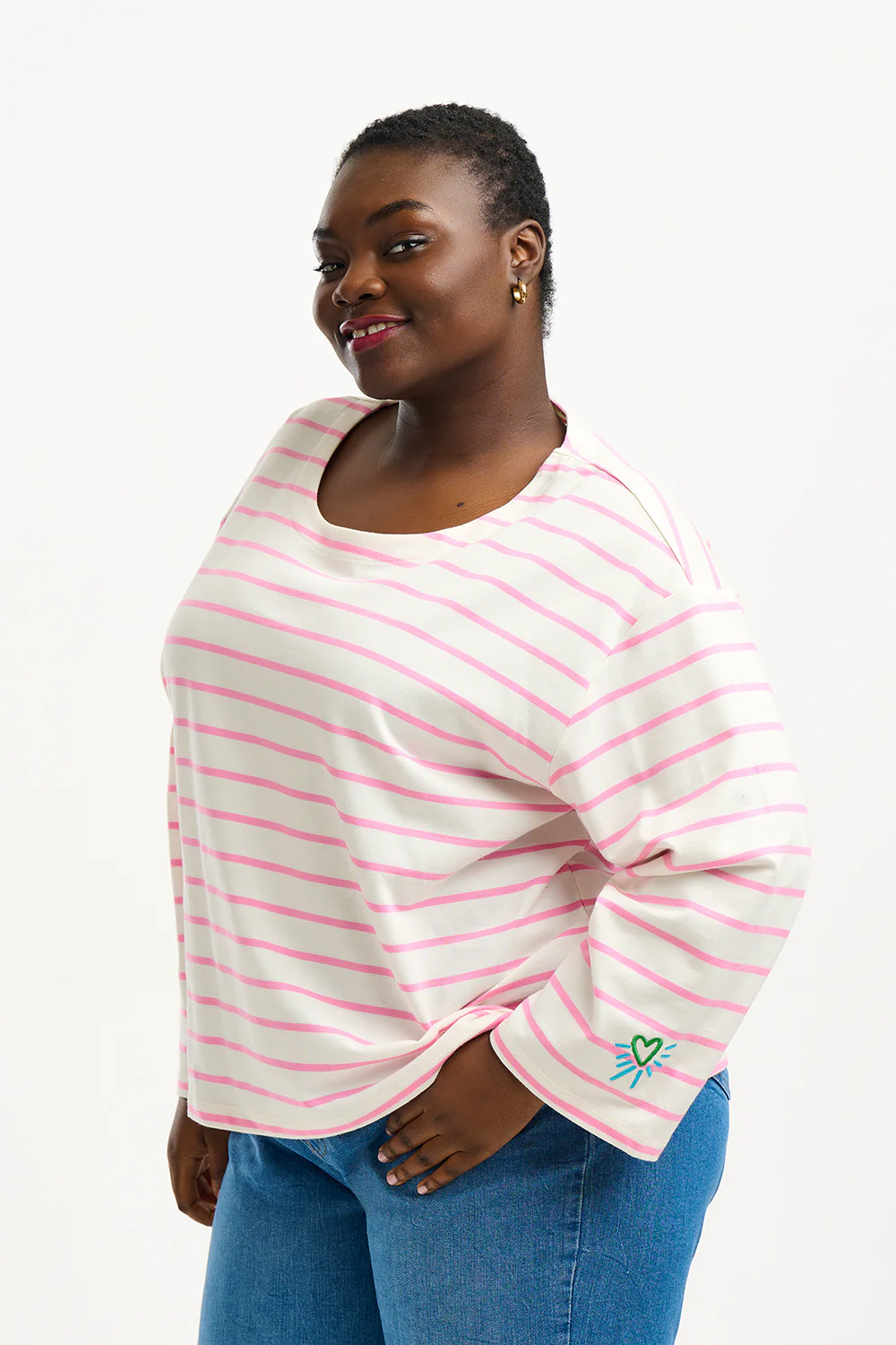 Billie Breton Top Off-White/Pink Heart Cuffβ