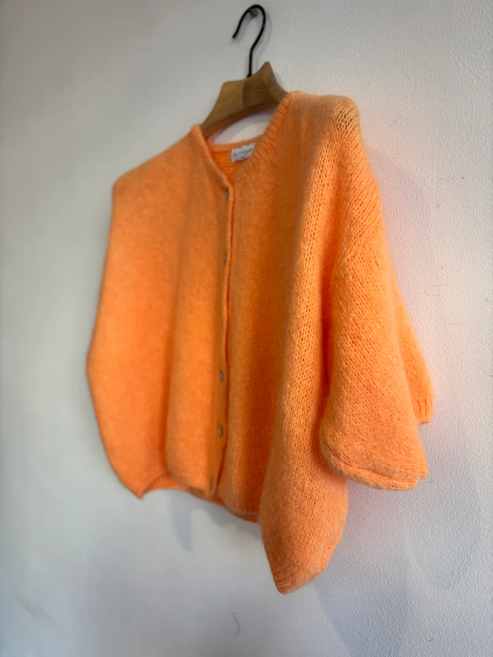 Cropped Sleeve Mohair Cardigan Orange Sherbet